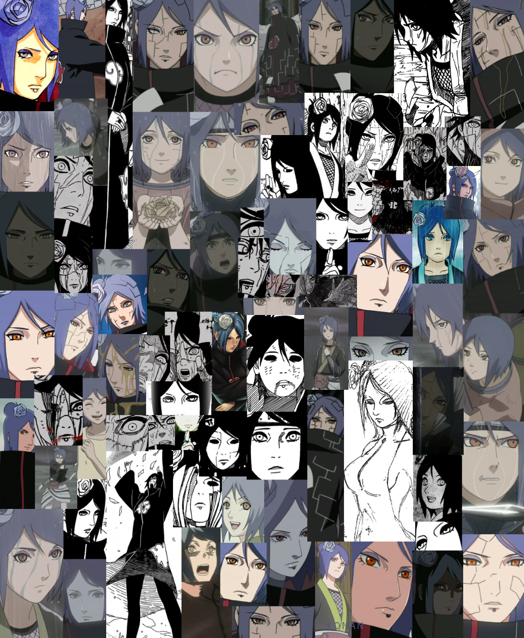 Konan valamikor Yahiko és Nagato társa volt.Valamikor érzett valamit Yahiko iránt,de a háborúk miatt nem lehetett kimutatnia.Yahiko halála után mindenben segített Nagatonak avagy Pain-nek.Titokban ő közvetítette az Akatsuki újabb fejleményeit Tobinak,aki ösztönözte Nagatot,hogy a béke nem létezik és hogy az Akatsukinak erős emberekre van szüksége.Később amikor Naruto ,,megkapta" a békefentartást Nagatotól,Konan otthagyta az Akatsukit,Tobi viszont még esőrejtekben megölte.